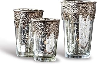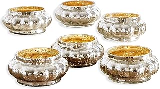 Loberon Lot de 6 photophores Latona - Verre - H/D env. 10/7 cm - Couleur Argent Vieilli - décorations de Noël