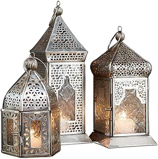 Loberon Lot de 3 lanternes Indian - Verre - H/L/P env. 23/8.5/8.5 cm - Couleur Argent