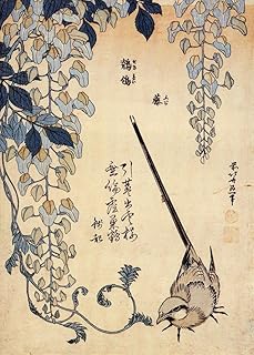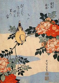 HOKUSAI Roses et oiseau Millésime Sur Format A3 Papiers Brillants de 250g. Affiches de Reproduction