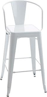 CLP Tabouret de Bar en Métal VASBRO, avec Dossier et Repose-Pied, Assise Ergonomique Hauteur de l´Assise: 77 cm, Chaise Haute de Bar avec Un Design Industriel, Couleurs au Choix: Blanc