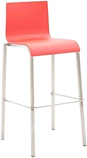 CLP Tabouret de Bar Design KADO Dossier et Repose-Pied I Chaise de Bar Surface Assise en Plastique I Piétement en Forme Carrée I Hauteur Assise 75 cm I Couleur: Rouge, Acier Inoxydable