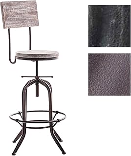 Tabouret de Bar Carson - Tabouret de Bar Design Industriel Réglable en Hauteur- Chaise Haute de Bar Assise en Bois Repose-Pieds en Métal - C, Couleurs:Antique Blanc