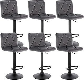 Lestarain Lot de 6 Tabourets de Bar avec Poignée Réglable en Hauteur,Chaise de Bar avec Dossier et Repose-Pieds,Assise en Velours et Pieds en Métal,pour Bar,Salon ou Cuisine,Gris foncé