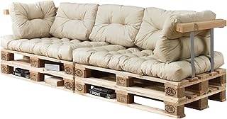 [en.casa] 1 x Coussin de Siège & 2 x Coussin de Dossier pour canapé Euro-Palette Beige Coussin