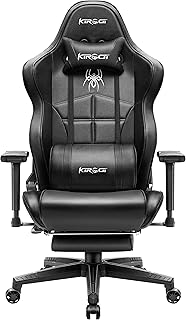Kirogi Chaise Gaming, Chaise Gamer avec Repose-pieds, Chaise de Bureau ergonomique avec Support Lombaire, Chaise de Jeu PC Inclinable pour adultes, Chaise de Bureau Haute en Cuir Fibre de Carbone.noir