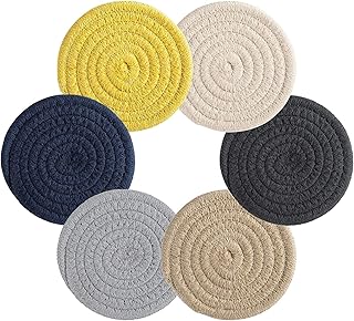 No Branded Mokinga Dessous De Verre en Rotin, Dessous Verre Bambou, Tapis dIsolation Thermique Rond à La Main 6 Pcs, Dessous De Verre Jaune pour Dessus De Table, Table Basse (Diamètre: 10 cm)