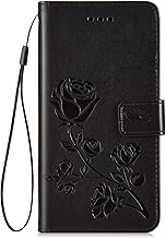 Hpory Coque Compatible avec Samsung Galaxy S7 Edge, Housse Etui en Cuir Coque à Rabat Magnétique Portefeuille Cover Case en Relief Rose Fleurs Pure Color PU Cuir Wallet Case, Noir