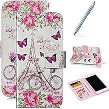 Robinsoni Compatible avec Samsung Galaxy A5 2017 Coque à Rabat,Pochette Portefeuille en Cuir Glitter 3D Coloré Motif Fleur Etui à Rabat Magnétique Folio Flip Case Wallet Stand Housse,Bonjour Paris