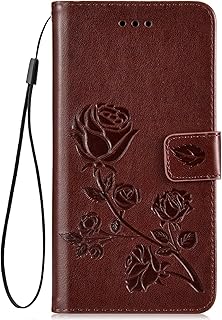 Hpory Coque Compatible avec Samsung Galaxy S3, Housse Etui en Cuir Coque à Rabat Magnétique Portefeuille Cover Case en Relief Rose Fleurs Pure Color PU Cuir Wallet Case, Brown