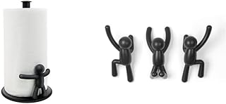 UMBRA Buddy Paper Towel Holder. Porte Papier Absorbant Buddy. Noir. 17.8 x 31.8cm & Buddy Hooks Assorted. Crochets muraux Buddy de Umbra - Porte-Manteau Mural décoratif, Ensemble de 3, Noirs.