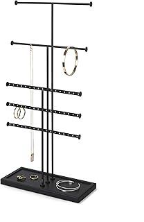 Umbra Trigem Hanging Organizer – 5 Tier Table Top Necklace Holder, Box Display with Jewelry Tray Base, Black/Black