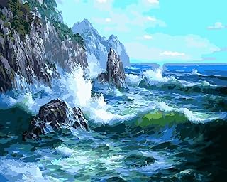 WOWDECOR Kit de peinture par numéros pour adultes, enfants, seniors, junior, débutants, peinture numérotée – Vagues rocheuses, montagnes marines 40,6 x 50,8 cm (sans cadre)