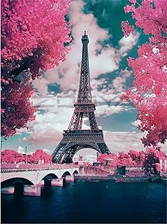 WOWDECOR Peinture par numéros pour adultes enfants filles Tour Eiffel Fleur 40 x 50 cm Peinture à l'huile pré-imprimée (avec cadre)