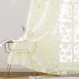Topfinel Rideaux Voilage A Oeillets Imprimé de Motifs en Feuilles Oeillets Rideaux Décoration Salon Chambre Décoré Cuisine Tulle 140x145cm(Largeur x Hauteur) 2pcs