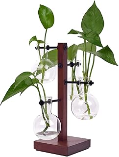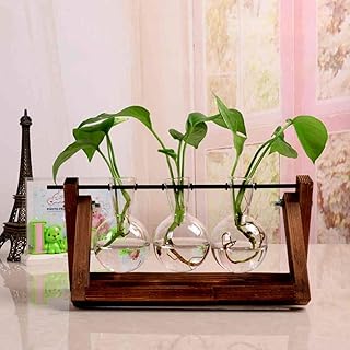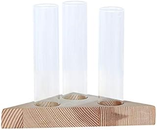 SNOWINSPRING Vase à Fleurs Pot De Fleur en Verre Transparent Tubes en Verre avec Support en Bois pour Plantes Hydroponiques Conteneur De Tubes à Essai Décoration De Table De La Maison