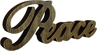 CVHOMEDECO. Panneau en Bois avec Inscription « Peace » sur Pied pour Bureau, Table, étagère, Mur, décoration de Bureau, 27,9 x 10,8 x 2,5 cm, Bois Dense, Naturel