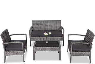 Deuba | Salon de Jardin Patio en polyrotin • Set Complet + Coussins | Gris • résistant intempéries et UV, canapé, fauteuils, mobilier de Jardin