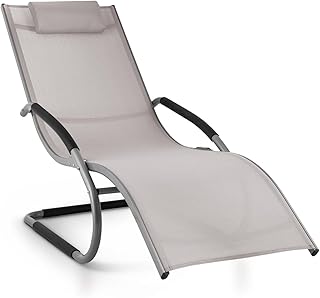 blumfeldt Sunwave Chaise Longue de Jardin (accoudoirs, résistante aux intempéries, Cadre en Aluminium Arrondi pour Un Effet Bascule, Pliable) - Taupe