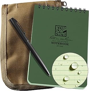 Rite in the Rain 946-KIT Kit de carnets à spirales résistant aux intempéries 10,2 x 15,2 cm Couverture en tissu Cordura, carnet vert 10,2 x 15,2 cm et stylo résistant aux intempéries
