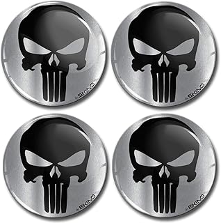 Biomar Labs® 4 x 68mm Autocollant 3D en Silicone pour Cache-Moyeu, Enjoliveurs, Centre de Roue Caches Emblème Punisher Crane A 7968