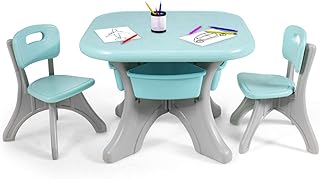 Costway Table et Chaises pour Enfants Ensemble Table et Chaises en MDF avec Espace de Rangement