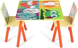 DREAMADE Ensemble Table et 2 Chaises pour Enfants en MDF avec Motif Animaux, Table et Chaises Polyvalentes Convient pour Apprentissage Jeux Manger, Table 60 X 60 X 44 CM et Chaise 27 X 27 X 50 CM