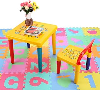 Cocoarm Ensemble de chaises de Table pour Enfants, Ensemble de chaises de Bureau avec Lettres Alphabet pour Enfants 2 en 1 pour l'étude de Jeu, Ensemble Mignon de Bureau et de chaises pour Enfants