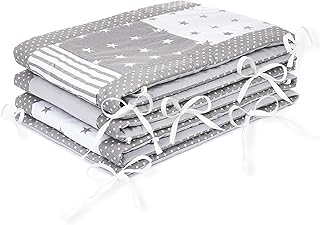 Amilian Parure de lit pour bébé 100 x 135 cm Tour de lit 420 x 30 cm ou 210 x 30 cm, Sternchen Klein Grau, 210 cm x 35 cm