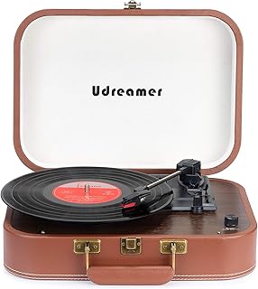Platine Vinyle,Tourne-Disque Valise Vinyle Bluetooth Platine Vinyle en Cuir PU avec Haut-Parleur USB Portable Lecteur LP entraîné par Ceinture phonographe