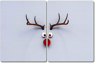 Tulup Noël Planche à Découper Su Verre 2x40x52cm - Céramique Induction Protection - Panneau Aanti-éclaboussures - Image en verre trempé - Art mural - Saint renne Rudolf