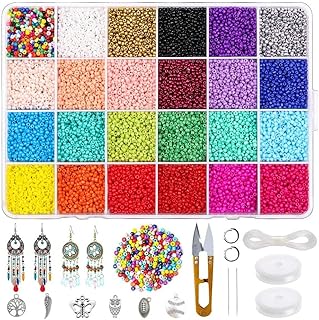 FUNNY HOUSE Mini Perles en Plastique de Verre 24000 pcs 2mm Perles Poney Créatifs avec Boîte de Rangement Perles Plastique Transparent pour Enfants Bracelet de Bricolage Art & Bijouterie (24 Color)
