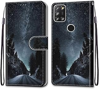 i-Case Pochette Coque pour Honor 9S (2020) Étui en Cuir Flip Lirves PU avec TPU Silicone Antichoc Housse Support Portable Wallet Élégant Protection Étui pour Honor 9S 5.45',Route de Nuit Noire