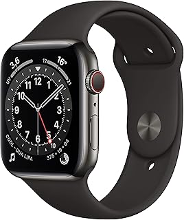 Apple Watch Series 6 (GPS + Cellular, 44 mm) Boîtier en Acier Inoxydable Graphite, Bracelet Sport Noir