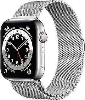 Apple Watch Series 6 (GPS + Cellular, 44 mm) Boîtier en Acier Inoxydable Argent, Bracelet Milanais Argent