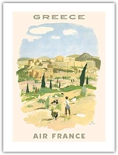 Gréce - Acropolis (Athènes) - France - Affiche Avion de Georges Beuville c.1958 - Prime Papier de Bambou Impression d'art 43x56cm