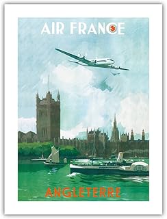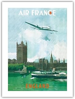 Angleterre - Tamise à Londres - Air France - Affiche Avion de Vincent Guerra c.1951 - Prime Papier de Bambou Impression d'art 43x56cm