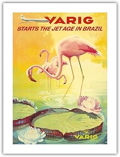 Brésil - Flamants Roses (Flamingo Rosados) - VARIG (Compagnie aérienne) - Affiche Avion c.1970 - Prime Papier de Bambou Impression d'art 43x56cm