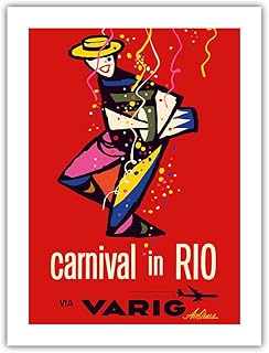 Carnaval de Rio - Rio De Janeiro, Brésil - par l'intermédiaire des compagnies aériennes Varig - Affiche Avion - Prime Papier de Bambou Impression d'art 43x56cm