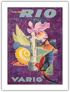 Rio, Brésil - Compagnies aériennes brasilien Varig - Affiche Avion de Unknown c.1955 - Prime Papier de Bambou Impression d'art 43x56cm