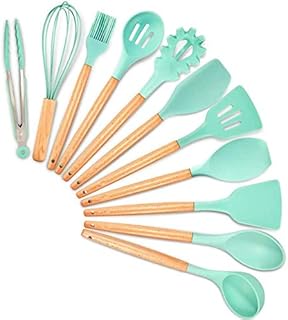 EKKONG Ustensiles de Cuisine, 12 pcs Set Ustensiles de Cuisine Non Toxique Silicone Manche en Bois de Haute qualité Résistant à La Chaleur Antiadhésif Cuisine Ustensile