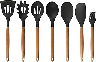 Bois Coque en silicone Ustensiles de Cuisine en silicone Ustensiles de Cuisine antiadhésive Cuillère Cuillère à soupe Cuillère spatule Toolfence 5 jeux d'ustensiles de cuisson